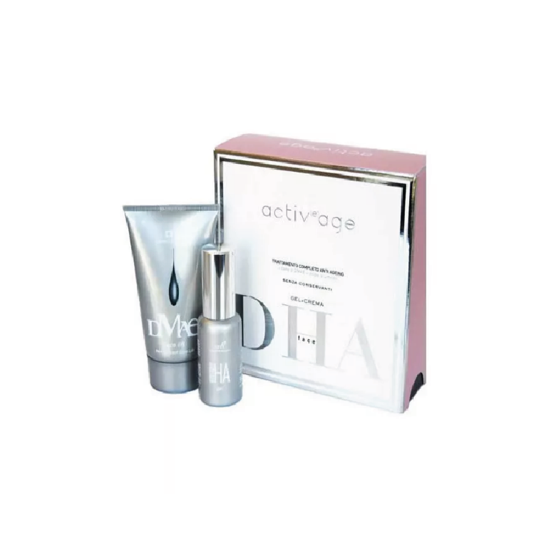Abbinamento di una crema, ricca emulsione ad effetto lifting cosmetico, particolarmente adatta a pelli mature o molto secche, con DMAE in forma liposomiale, quindi più efficacemente veicolato, che migliora la coesione dei cheratinociti stabilizzando la struttura della pelle, e di un gel viso a base di Acido jaluronico con effetto di idratazione e distensione delle rughe e Estratto di Goji ad effetto antiossidante e di contrasto all'invecchiamento ossidativo da radicali liberi, l'uso costante restituisce elasticità e luminosità alla pelle.